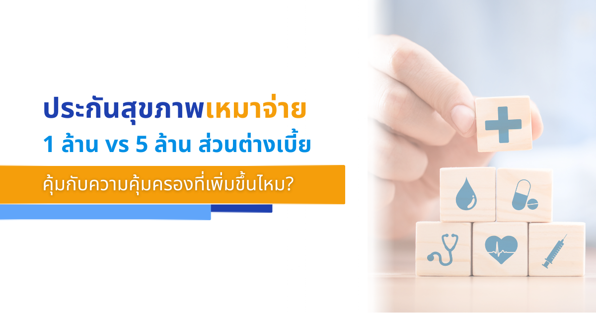 | หัวข้อเปรียบเทียบ | แผนเหมาจ่าย 1 ล้านบาท | แผนเหมาจ่าย 5 ล้านบาท | ส่วนต่าง |