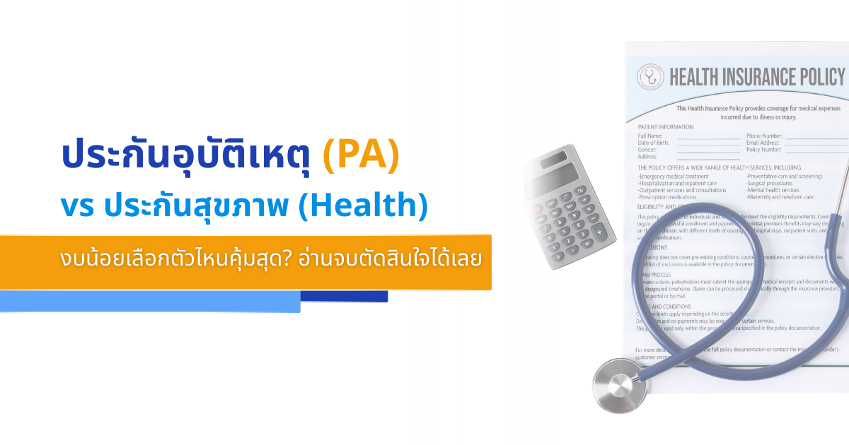 | หัวข้อเปรียบเทียบ | ประกันอุบัติเหตุ (PA) | ประกันสุขภาพ (Health) |